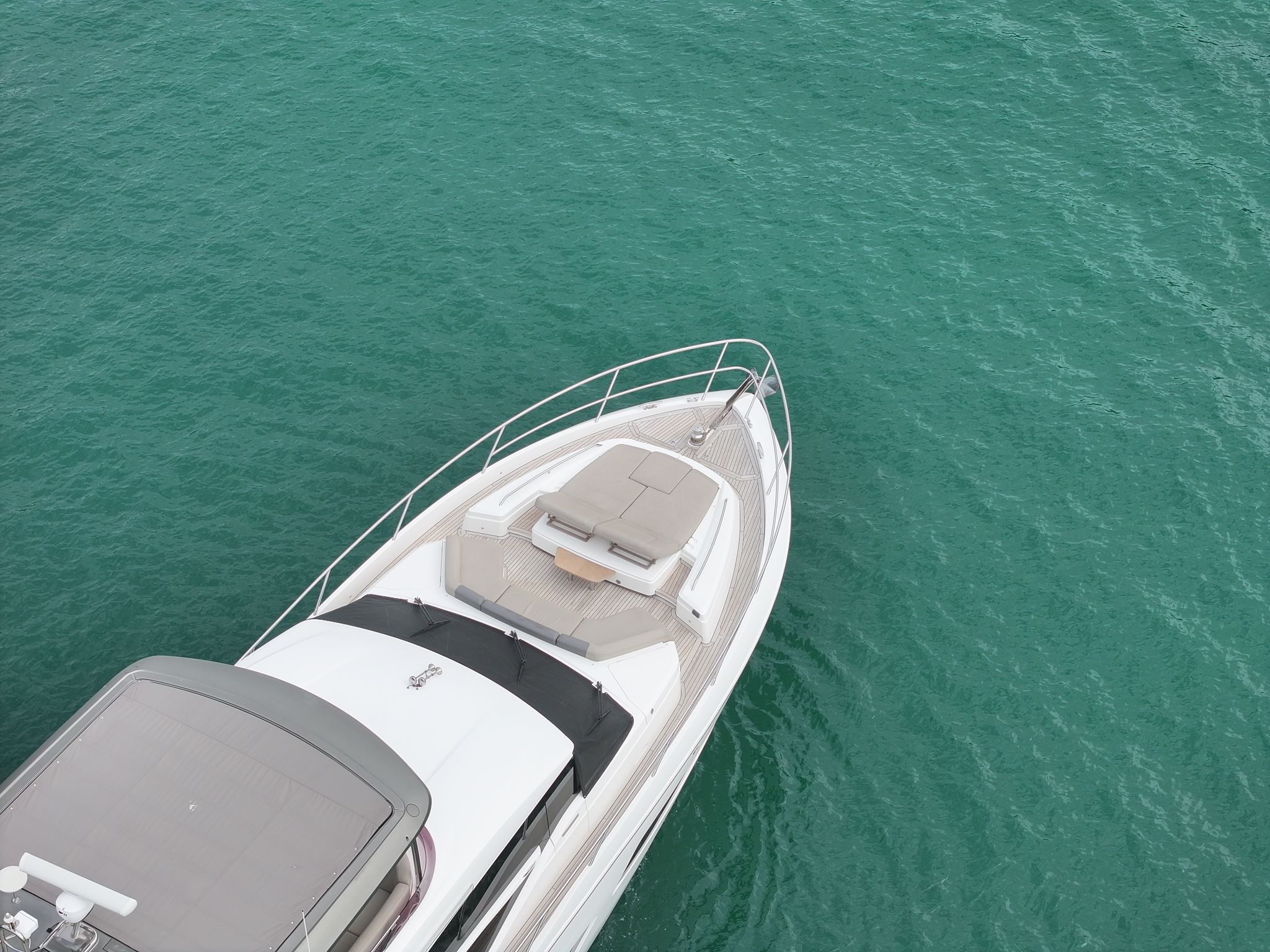 Comfortable Cruising: The yacht’s deep-V hull design provides a smooth and efficient ride.